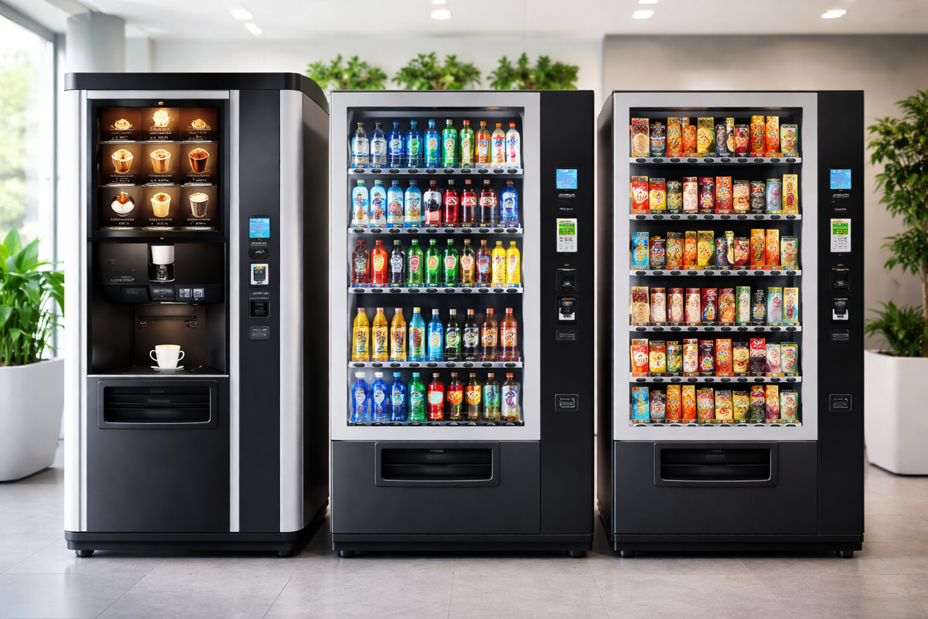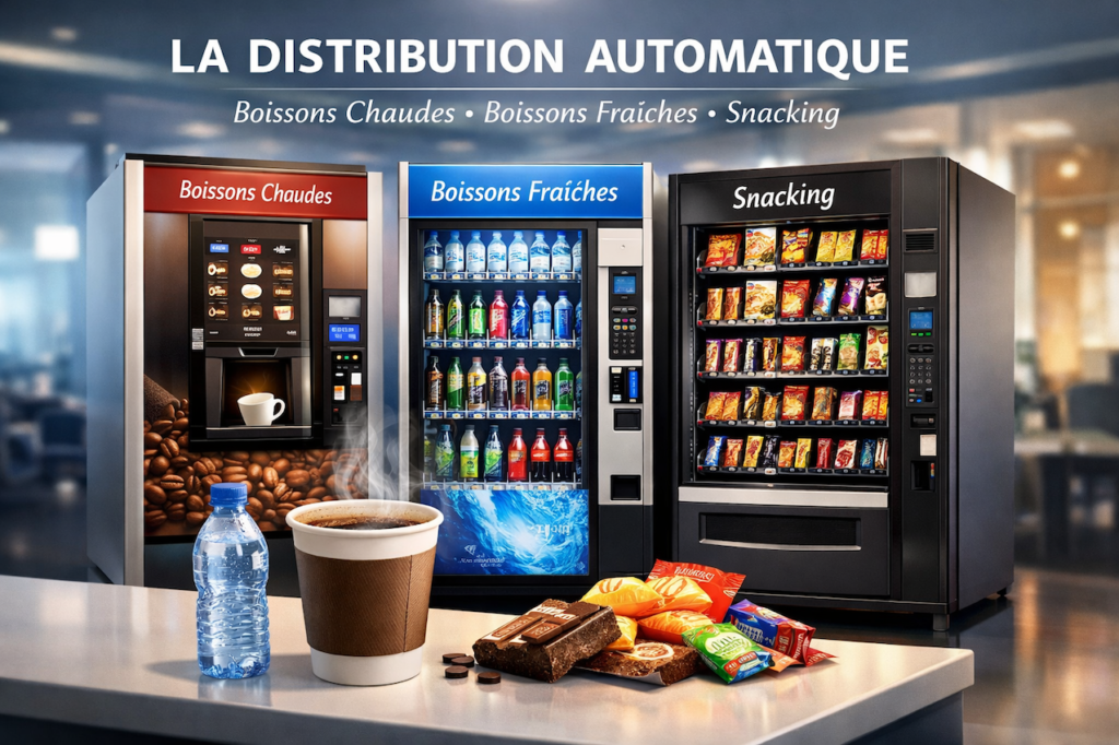 Nous proposons des distributeurs automatiques de café, de boissons, de snacking ainsi que des fontaines à eau, adaptés aux entreprises de toutes tailles.Ils garantissent une qualité constante des boissons et une hygiène irréprochable. Des solutions flexibles sont disponibles selon vos besoins et votre espace.